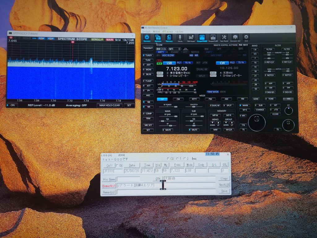 今年もアマチュア無線を使ったJアラートの訓練に参加しました。と言ってもこちらから話し掛けることはなく通信の様子を『watch』(聞いている)だけです。キー局が大阪にあるため7MHzの信号は東京では弱くスコープにもほとんど表示されません。途中からU/VHFに周波数が変わったため東京までその電波は届かず通信を聞くことも出来なくなってしまいましたが、D−Star機能搭載の無線機ならインターネット経由で繋がれたようです。災害時に備えてオールモード・オールバンド・D−Star対応の無線機を用意する必要がありそうです。週末にハムフェアがあるのでちょっと見てこようかな🙄