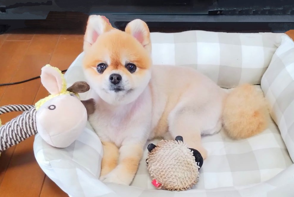 ピピタンベッドでリラックス。今回も大分伸びていたらしくカット後は一回り小さい豆柴ピピタンになって帰ってきました。スッキリして気持ちよさそうです😊