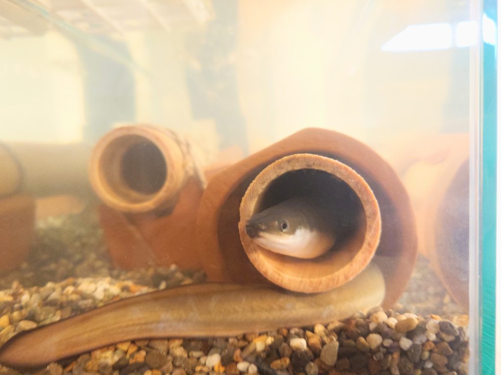 と言っても蒲生接骨院のことではありません😅先日の釣行で釣った3匹のウナギ達を一回り大きな新しい水槽に移し、場所もキッチンから私の部屋へ移動しました。これで夜の明るさを避けることができ、夜行性のウナギは元気に水槽の中で活動することができます。新居には新たに竹筒を2本設置したので、いつもその中で気持ち良さそうに身を潜めています。最初は食べなかった餌も最近は少しづつ食べるようになってきました。我が家の環境にも慣れてきてくれたかな😉大きくなるのが楽しみです。