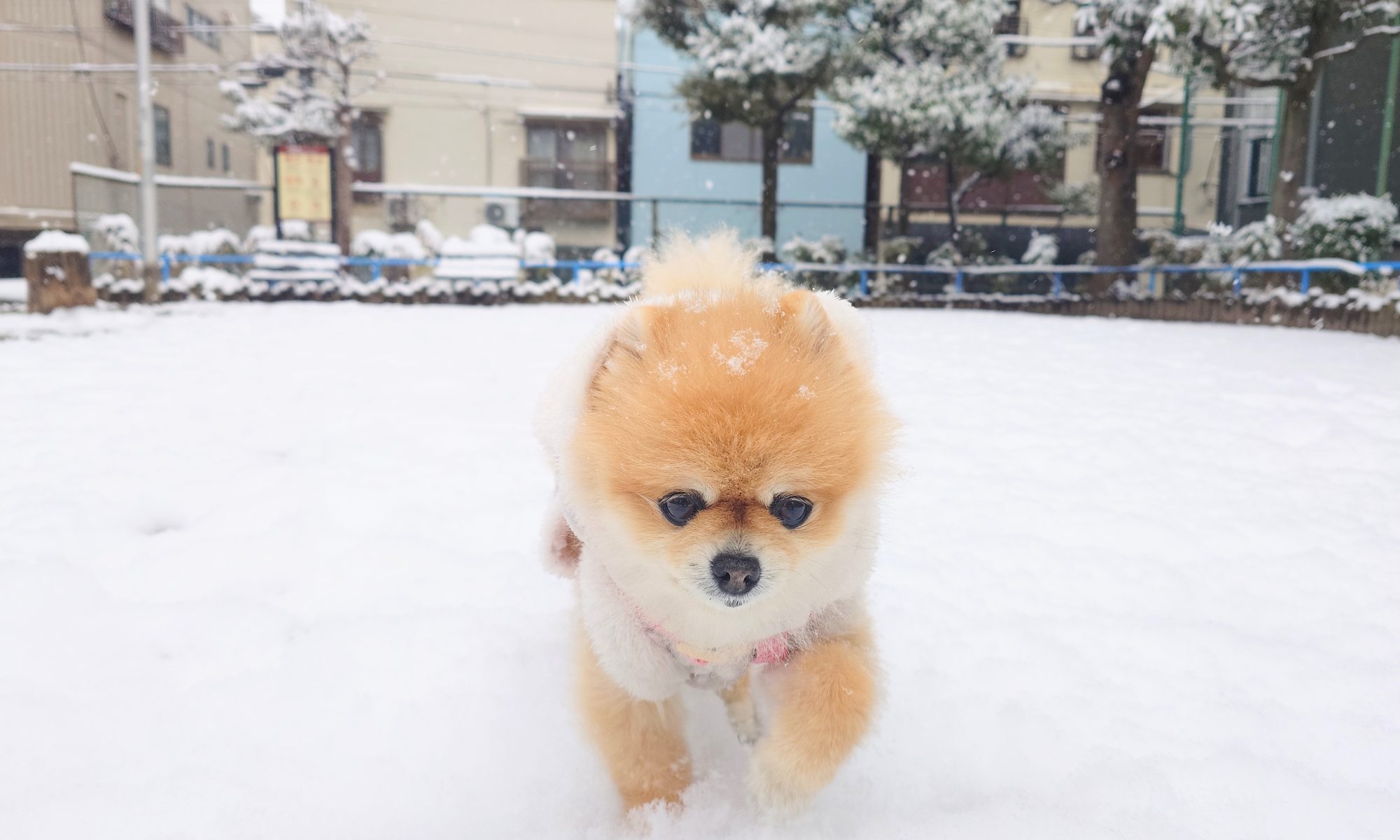 昨日は雪が降りましたね。ピピタン、雨は苦手ですが雪は大好きです。吉原公園までお散歩に行ってきました。