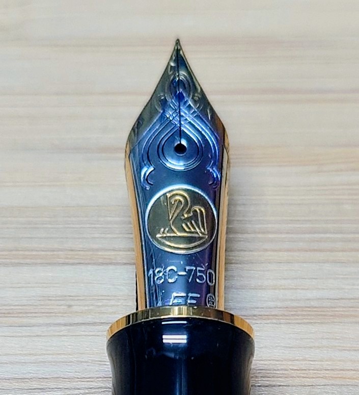 腐食してしまった首軸の装飾リングはもちろん、万年筆全体が綺麗に磨かれ、ニブもピカピカ✨です。