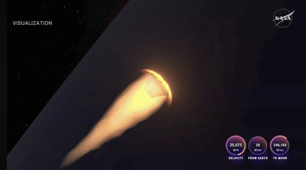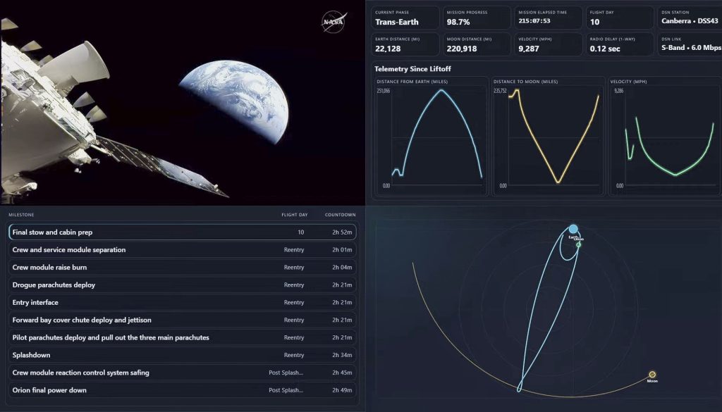 日本時間4月11日6時43分、月周回からの帰途にあるオリオン宇宙船は地球からの距離22,128マイルまで近づいてきました。