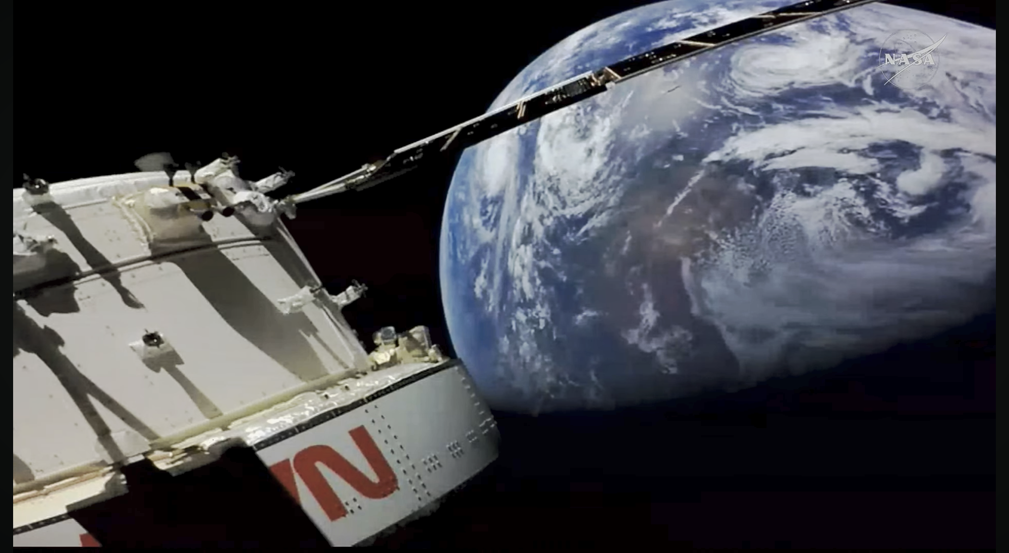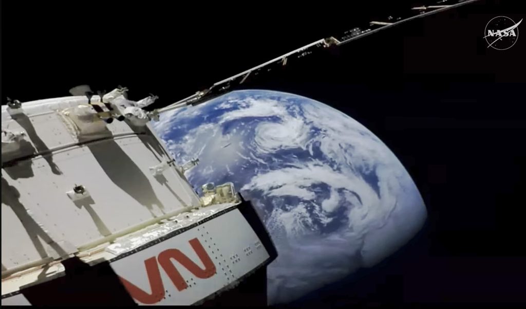 甲板を歩くChristina Koch宇宙飛行士