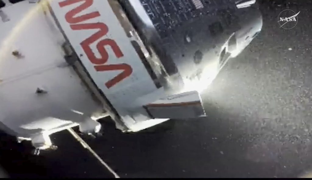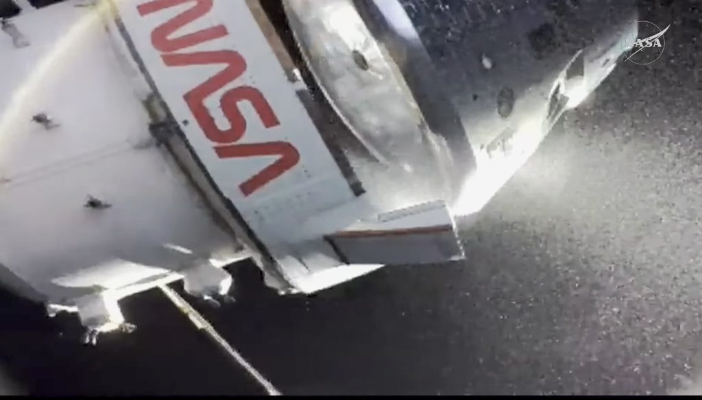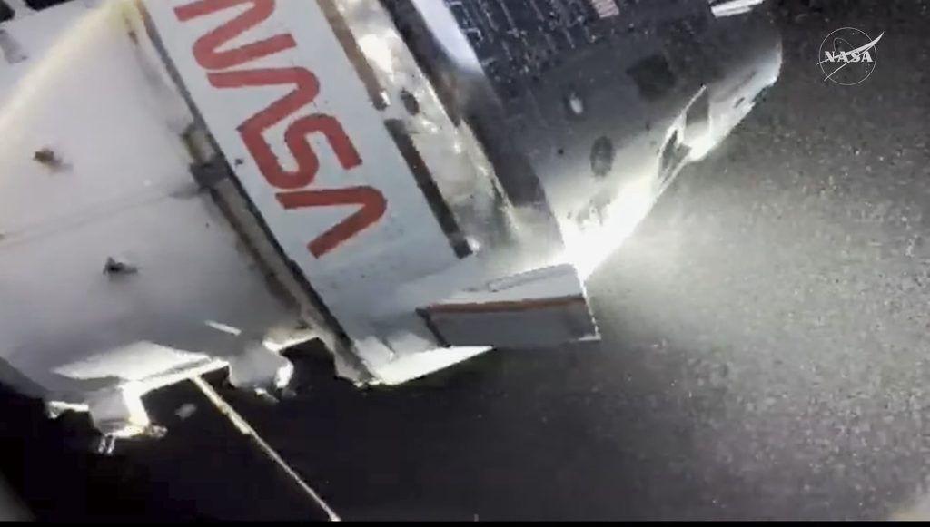 大気圏突入の際の摩擦で船体が燃えた様子がよくわかりますね。