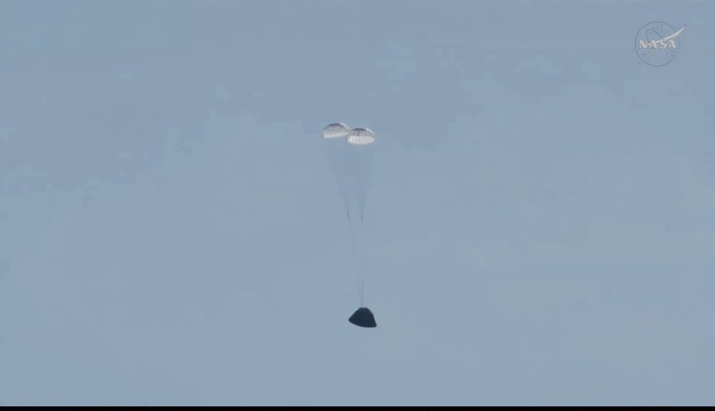 日本時間2026年4月11日9時8分、アメリカ・カリフォルニア州沖の太平洋に着水。