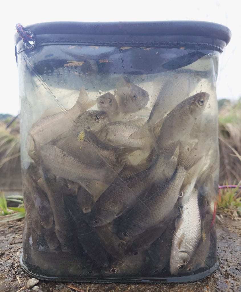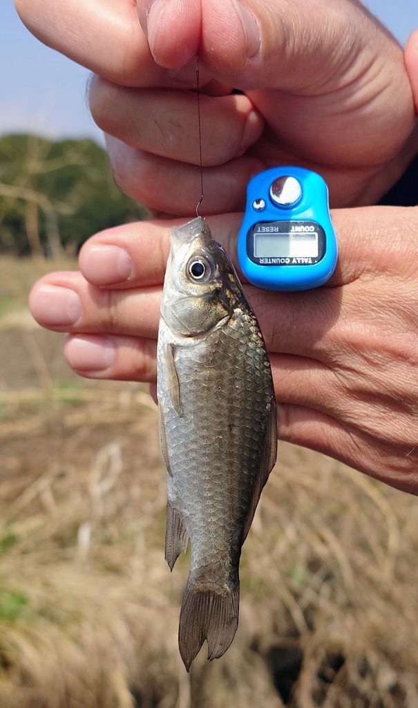 私も釣り開始からコンスタントに釣れ続けあっという間に50匹。13時の終了時には釣り友83匹、私103匹と今年2回目の束釣り達成。クチボソは2匹だけ、ほとんど小鮒という釣果でした。